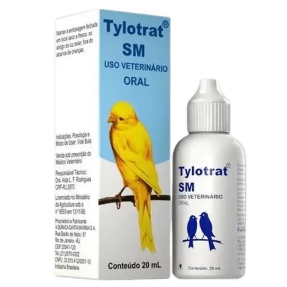 Tylotrat SM 20ml indicado para o tratamento das complicações respiratórias de origem bacteriana, Micoplasmose, CRD das aves, causadas por Mycoplasma gallisepticum e Mycoplasma sinoviae. Indicado também para o tratamento do peito seco. Administrado por via oral na água.